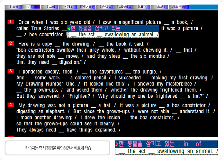 3. ÇнÀÀÚ´Â Á¤´äÀ» ¸ð¸£¸é Áï½Ã Á¤´äÀ» È®ÀÎÇϰԵǰí(À̵¿Å°¸¦ ´©¸£¸é ´ÙÀ½ ´Ü¾î·Î
